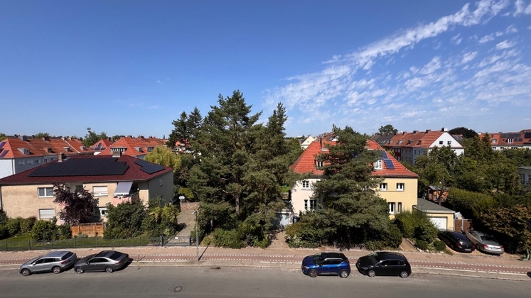 Die Wohnung befindet sich im dritten Obergeschoss eines gepflegten Mehrfamilienhauses und besticht durch einen praktischen Grundriss: Vier gut geschnittene Zimmer, eine zentrale Diele, ein modernes Duschbad sowie eine Küche, ohne Einbauten, mit Zugang zur sonnigen Loggia stehen zur Verfügung. Alle Räume sind direkt von der Diele aus erreichbar, was die Wohnung besonders flexibel nutzbar macht. Die Loggia mit Blick in das Fliegerviertel ist ein echtes Highlight – hier können Sie in ruhiger Umgebung entspannen und den Blick ins Grüne genießen. Mehr Infos